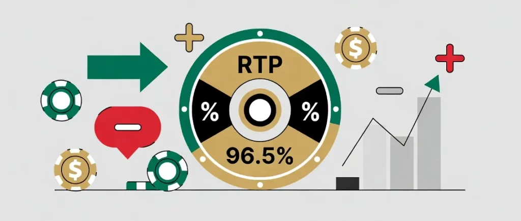 RTP stands for Return to Player. It’s a percentage. If a game has 96% RTP, that means for every $100 that goes through the game over its lifetime, $96 gets paid back to players and $4 stays with the casino. That $4 is called the house edge. RTP and house edge are just two sides of the same number. 96% RTP equals 4% house edge. They always add up to 100.
