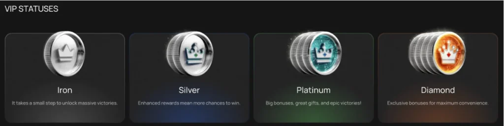 | DIAMOND | Up to 10% | x3 (or none) | Individual package | No-wager bonuses, personal manager, highest limits |