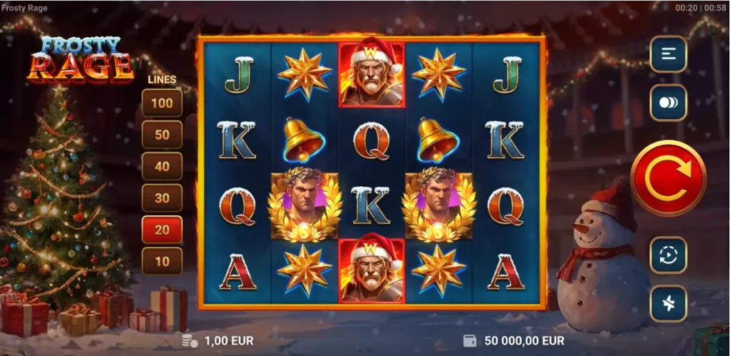 The Frosty Rage online slot offers a unique gameplay experience built around variable paylines – a system that puts control directly in players’ hands. Choose anywhere from 10 to 100 active lines, and watch how your selection affects bet size, volatility, hit frequency, and potential payouts. This Christmas-themed slot from TrueLab features an RTP of 96.04% and classic slot mechanics that feel both familiar and fresh.
